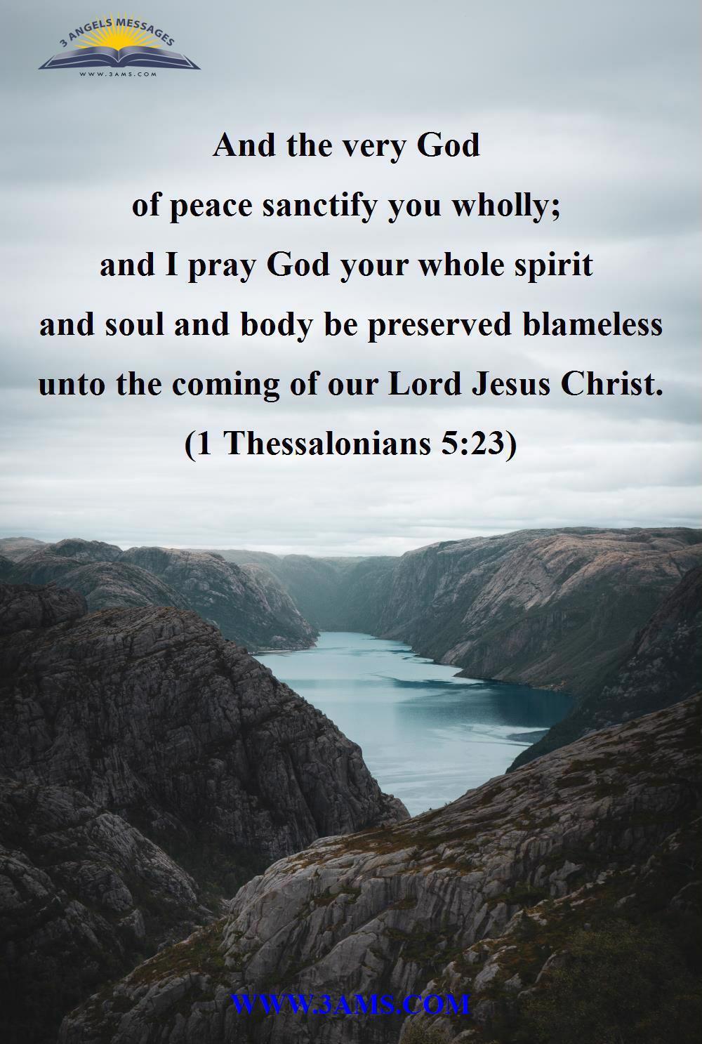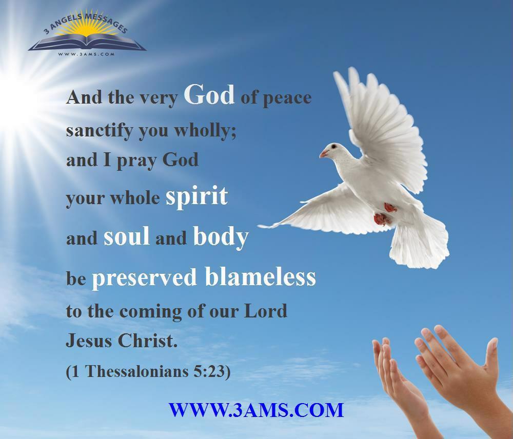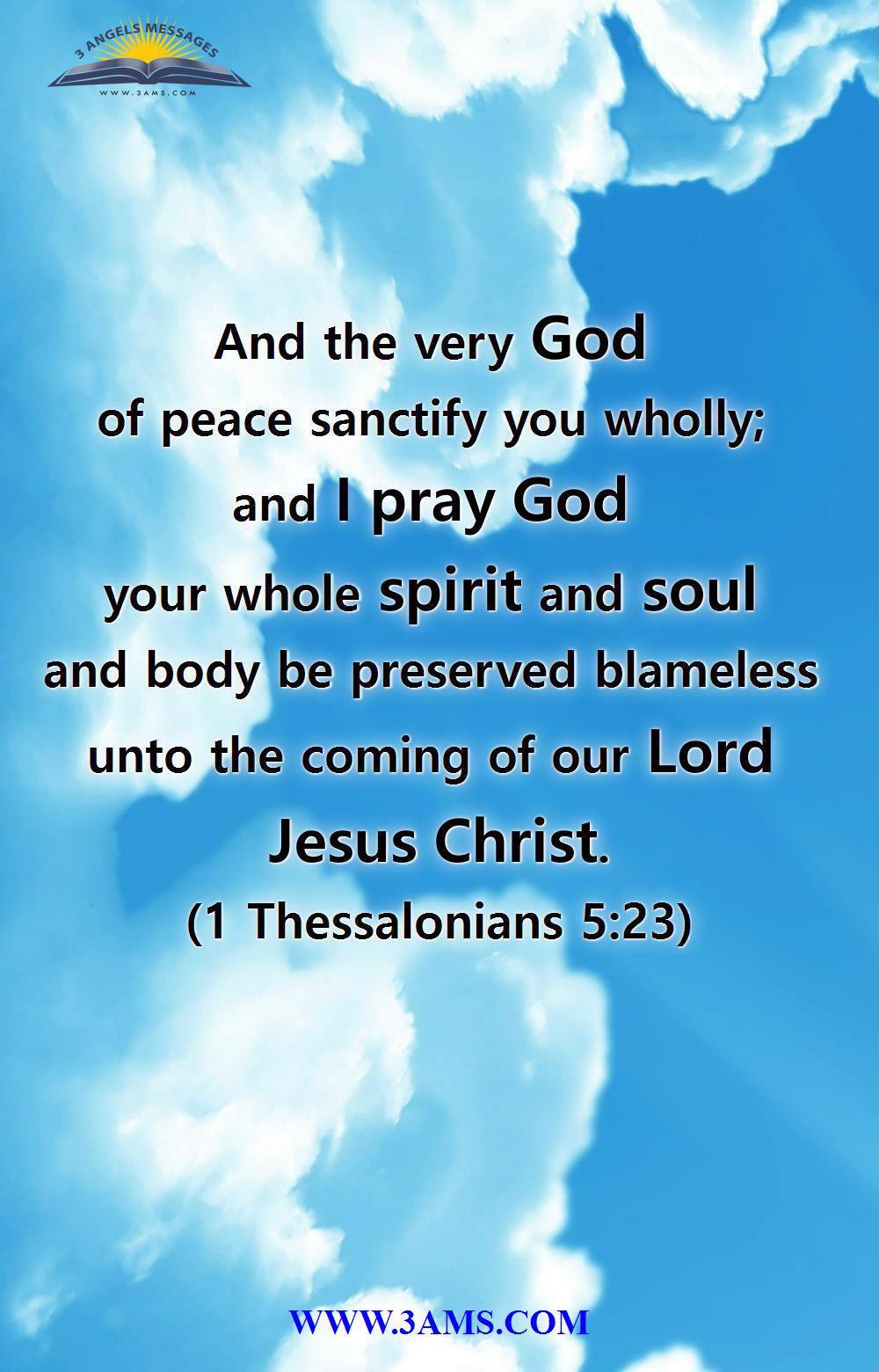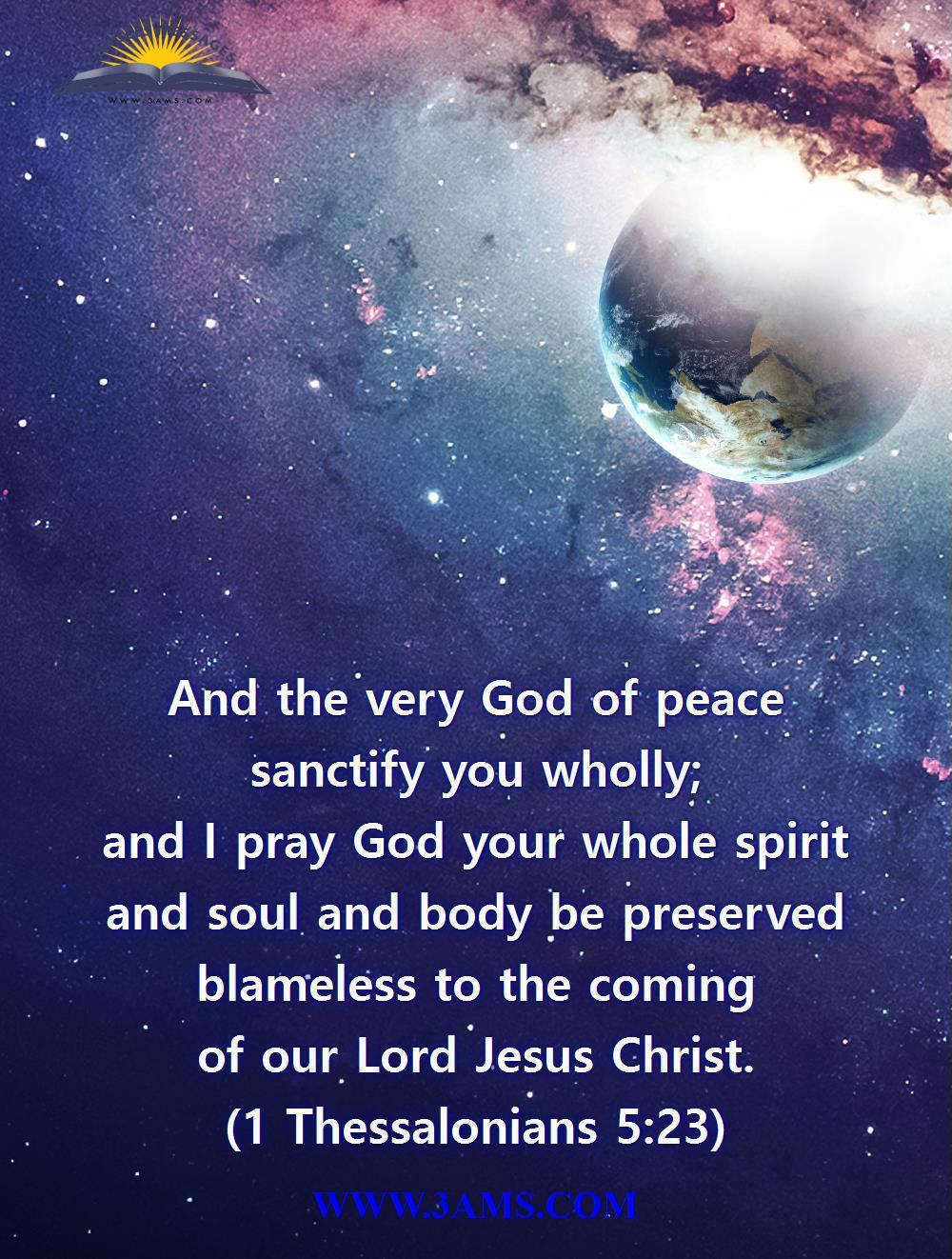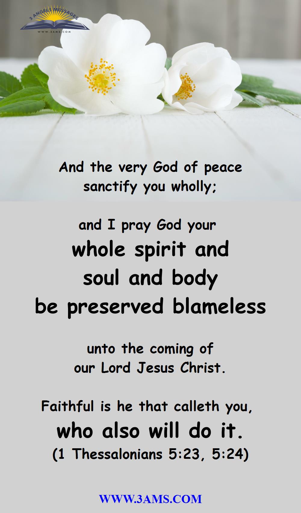 And the very God of peace sanctify you wholly; and I pray God your whole spirit and soul and body be preserved blameless unto the coming of our Lord Jesus Christ. (1 Thessalonians 5:23)