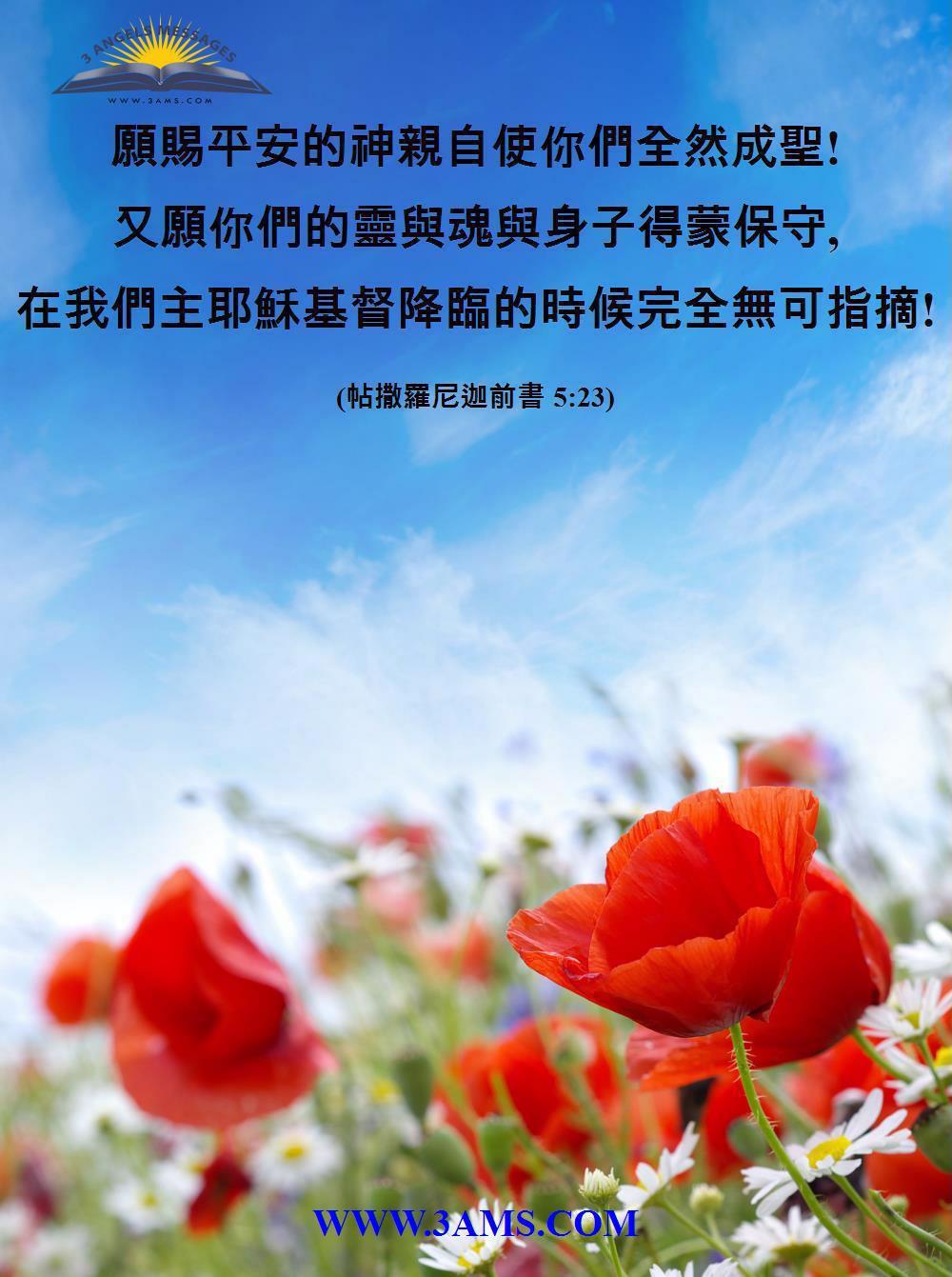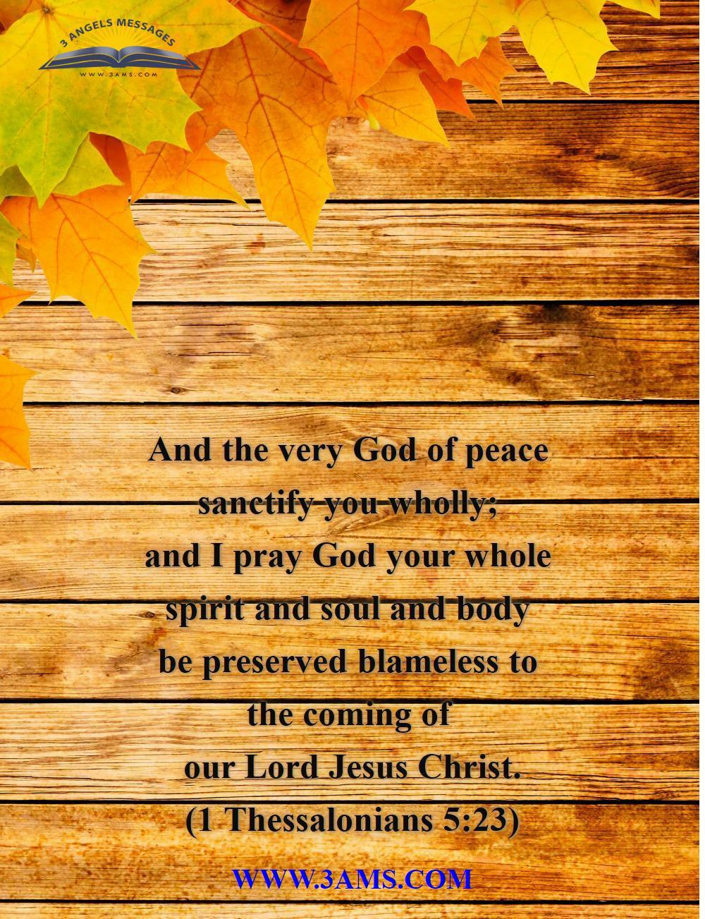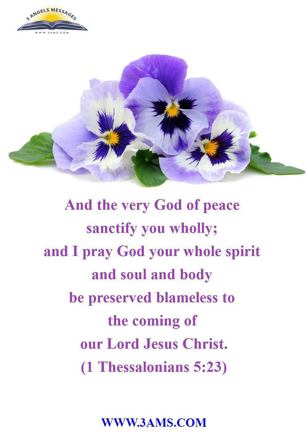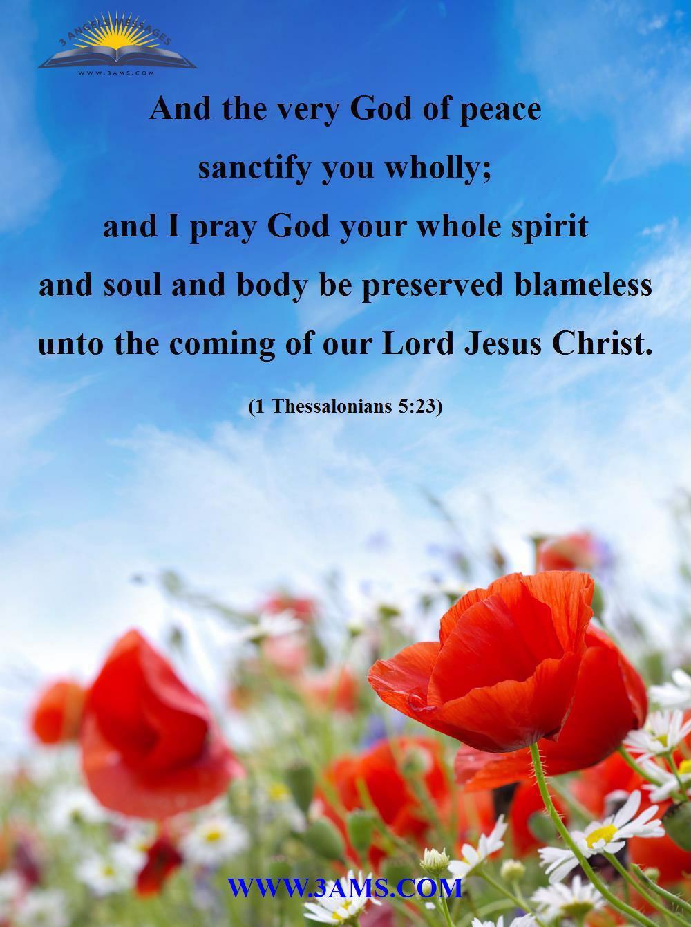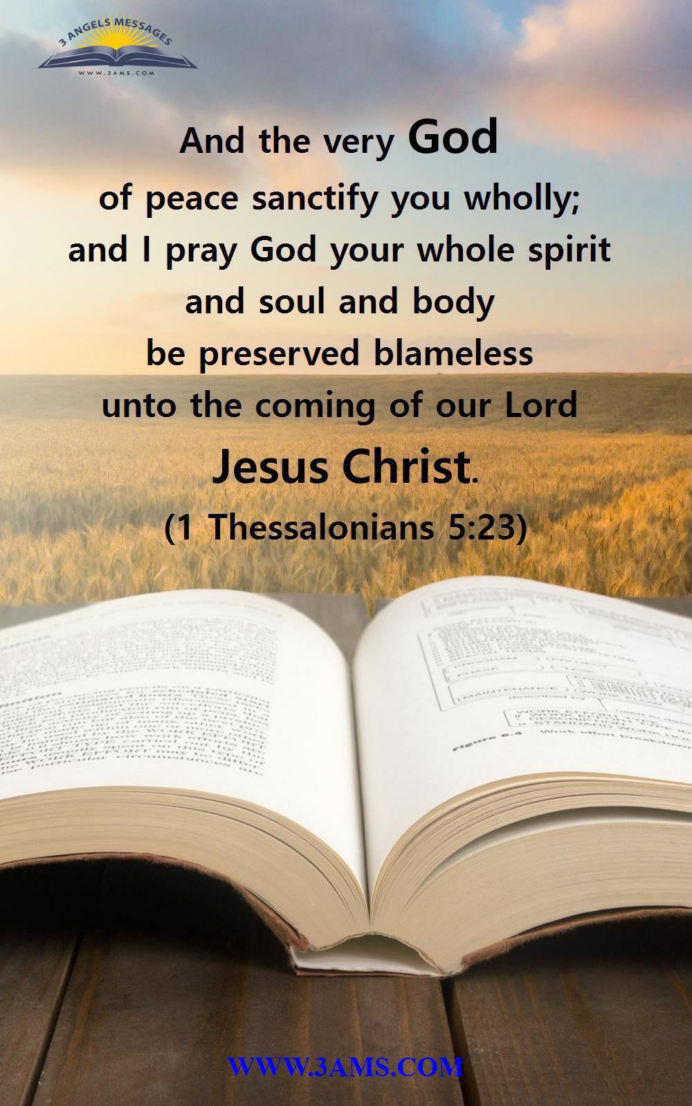 And the very God of peace sanctify you wholly; and I pray God your whole spirit and soul and body be preserved blameless unto the coming of our Lord Jesus Christ. (1 Thessalonians 5:23)
